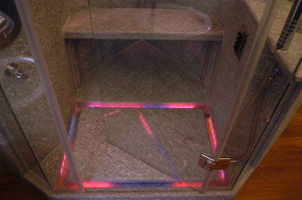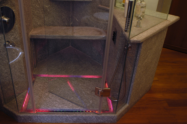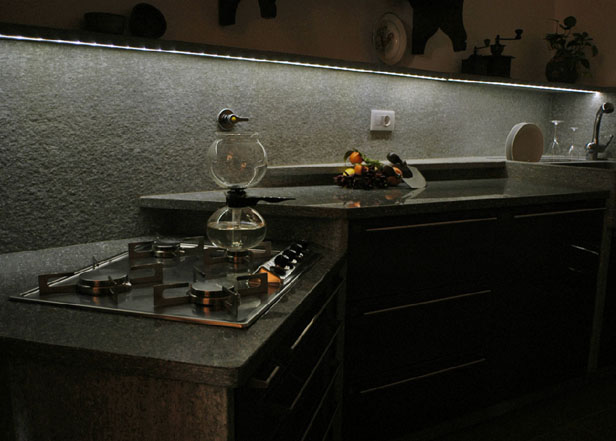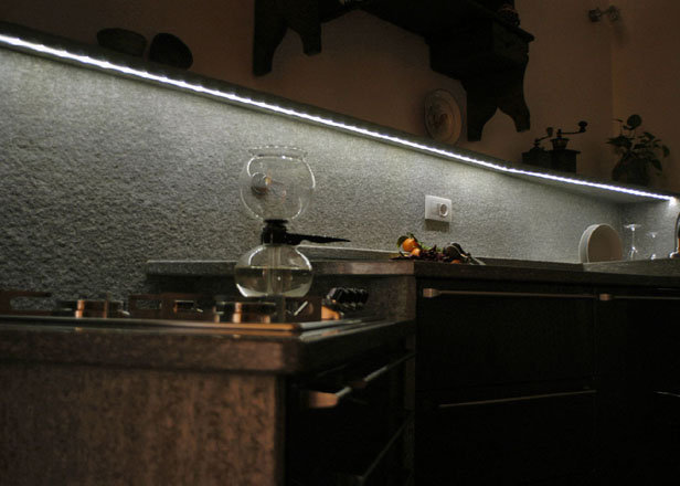 L’applicazione dell’illuminazione a led ha consentito di sperimentare la suggestione dei momenti del vivere.
